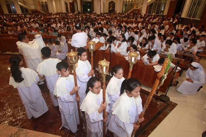 Istilah Kamis Putih ini merujuk pada pakaian putih yang dikenakan imam dan petugas liturgi lainnya sebagai simbol kemuliaan dan kesucian.